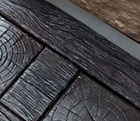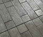 Diseño que combina listones con imitación a vetas de la madera y adoquines con patrones obtenidos del corte transversal de troncos.